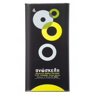 Anoskeli, PDO Kolymvari – это моносортовое оливковое масло первого отжима со средней кислотностью 0,4%. Это масло, отмеченное международными наградами, отличается неизменно высоким качеством, насыщенным вкусом и богатством биологически активных веществ. Этот продукт сертифицирован как защищенное наименование места происхождения (PDO) Колимвари, Ханья, Крит, и имеет сертификат о безопасности для здоровья в соответствии с Регламентом ЕС 432/2012.